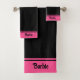 Elegant Simple Name Text on Black & Pink Bath Towel Set