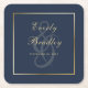 Elegant Simple Navy Blue Gold Border Script Square Paper Coaster