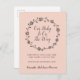 Simple elegant floral buds wreath pregnancy announcement and a modern trendy script typeface.