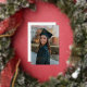 An Elegant Simple Script Photo Graduation Gold Foil Invitation with script font, full bleed portrait photo on the front with name, school, and class of year. The back has “Let’s Celebrate” with the graduate’s name and graduation party details.