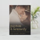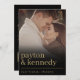 This invitation exudes elegance and simplicity, featuring a minimalistic design with timeless black and gold accents. Its clean lines and modern layout make it suitable for couples seeking a unique yet understated invitation style. The integration of a photo adds a personal touch, making the invitation feel intimate and memorable. Whether for a formal affair or a more casual celebration, this invitation sets the tone for a sophisticated and stylish wedding event that guests won't soon forget.