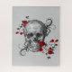 Elegant Sketch of Black Skull, Red Roses & Swirls Jigsaw Puzzle