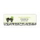 Elegant skulls Halloween green wedding label, featuring a black skull couple bride and groom on ivory background and a skull pattern border. The groom wears a green hat and the bride a green bow.