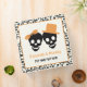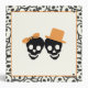 Elegant skulls Halloween orange wedding binder, featuring a black skull couple bride and groom on ivory background and a skull pattern border. The groom wears an orange hat and the bride an orange bow.