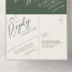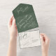 Elegant Slant Script Dark Moss Green Wedding All In One Invitation