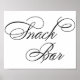 Cette belle et intemporelle signalisation horizontale "Snack Bar" ajoute une élégance simple à tout motif classique de mariage, douche ou fête. Le design de script luxueux comprend une calligraphie noire moderne fantaisiste et romantique. La belle police avec une couleur arrière - plan personnalisable permet de s'adapter facilement à n'importe quel thème. Pour d'autres couleurs ou produits correspondants, veuillez visiter le magasin JustFharryn Zazzle, ou contacter le concepteur, c/o Fharryn@yahoo.com Tous droits réservés. #zazzlemade