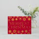 This elegant holiday photo card features a festive red background with "Merriest Christmas" surrounded by snowflakes in foil on the front. On the back you will find one square photo, and elegant text. The foil on this card really shines and adds that extra special touch to your holiday cards. Foil is available in gold, silver, and rose gold.