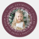 Add a festive touch to your holiday envelopes with our Elegant Snowflake Wreath return address labels. The holiday return address stickers feature your photo encircled by a wreath of white snowflakes and pine branches with a berry purple background. Your last name and return address are displayed on the outer edge of the round holiday stickers in white lettering.
