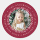Add a festive touch to your holiday envelopes with our Elegant Snowflake Wreath return address labels. The holiday return address stickers feature your photo encircled by a wreath of white snowflakes and pine branches with a cranberry background. Your last name and return address are displayed on the outer edge of the round holiday stickers in white lettering.