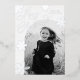 Elegant holiday photo card featuring your vertical photo framed by a white arch and silver foil snowflakes. "Merry Christmas" is displayed in a silver foil calligraphy script. Personalize the front of the silver foil Christmas card by adding your name. The card reverses to display an additional photo, the year, and your custom message in white lettering on a navy background.
