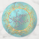 An elegant soft teal bubbled matching wedding or engagement party confetti with a gold filigree type design. Customize with your bride and grooms first name. Designed by Robin D. Cox.
