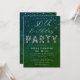 A simple, modern, elegant and chic birthday party invitation template featuring a textured emerald background, the word PARTY covered in white diamonds (simulated, not real diamonds), modern calligraphy script and typography in white. A chic, timeless design for a woman of any age, on her 21st, 30th, 35th, 40th, 50th, 55th, 60th, 65th, 70th, 80th or 90th birthday!