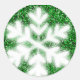 Elegant sparkling glitter green frosty snowflake classic round sticker