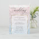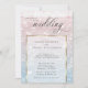 Wedding Invitation | Stunning shimmering sparkly Ocean waters glistening in the setting sun - in pale shades of dusty rose pink and dusty blue - text appears on a sheer white sparkling gold edged frame that shows the design but allows the text to easily be read. Accented with beautiful elegant handwritten calligraphy. Easy to personalize wedding template.