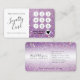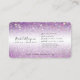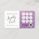 This is the perfect customer loyalty business card for a trendy, stylish, girly, and modern lash artist, makeup artist, nail technician, and many more professions. This design features a chic, glamourous, and pretty lilac purple glitter bokeh ombre background with elegant handwritten script typography. It's modern, elegant, girly, unique, trendy, stylish, and cool; the perfect design to impress your customers.