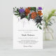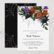 Celebrate a bride-to-be who loves fall or Halloween with a spooky and elegant bridal shower. This design features orange, black and purple flowers clustered around spider webs. The back features a large spider web and can be removed for a solid colour back by clicking "customize further" in blue.