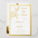 Announce your upcoming celebration with this elegant gold foil Save the Date card featuring a delicate line-art cherry blossom sprig placed in the top left corner. The botanical illustration is beautifully framed within a modern double-rectangle border, pairing a fine inner line with a bold outer frame for a clean and sophisticated presentation. Rendered entirely in shimmering gold foil on crisp white stock, the design offers a luxurious, minimalist aesthetic that feels both romantic and timeless.