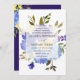 Elegant and modern floral wedding invitation features a background of delicate watercolor spring flowers in yellow, blue and purple.