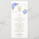 Elegant Spring Blue Floral Gold Holy Communion Menu