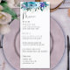 Elegant spring dusty blue purple floral wedding menu. Elevate your wedding dining experience with this unique wildflower-inspired menu, adorned with delicate dusty blue, purple, and lilac florals. Featuring elegant watercolor wildflowers and lush greenery, this design captures the enchanting beauty of a spring or summer meadow. The refined combination of flowing script and classic serif typography ensures a sophisticated and readable layout, beautifully showcasing your carefully curated menu. Perfect for nature-inspired and romantic weddings, this menu adds a charming, elegant touch to your table setting, enhancing the overall ambiance of your special day.