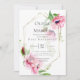 Watercolor pink poppies with greenery adorn a gold geometric crystal shaped multi faceted frame. Reverse is a complimentary coordinated pink. Customize text, font style, colour and size. Design created for the BarefootBride™ by ©WhimsicalArtwork™ We created this template to make it easy for you to personalize with your own information. This is part of a coordinated wedding stationery suite.