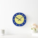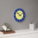 Modern elegant stars on blue and yellow Wall Clock. Sunrise text can be personalized.