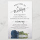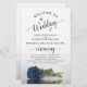 These wedding programs are elegant and tasteful, while still being budget friendly. The design features a single long stemmed dusty steel blue grey coloured rose lying on its side, reflecting in a pool of water with waves and ripples. The typography features lacy black script calligraphy, and there is room for details on the ceremony, the bridal party, and a short thank you.