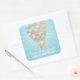Indiquez votre message de remerciement sur les faveurs du baby shower avec cet autocollant décoratif! Le design est assorti à une montgolfière dans les tons pastel colorés de l'arc-en-ciel. Sunburst pour arrière - plan. Personnalisez avec votre message de remerciement.