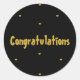Célébrez des moments spéciaux avec cet élégant autocollant rond en noir et or "Félicitations". Parfait pour les diplômes, les promotions, les mariages et les réalisations, ce design élégant ajoute une touche de classe aux cadeaux, enveloppes, faveurs de fête, et plus encore. La police de trait d'or en gras sur un arrière - plan sombre en fait un choix exceptionnel pour toute célébration.