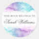 Étiquettes de livres élégants et tendance ou autocollants de plaques de livres avec des bordures d'aquarelle violet et bleu aqua haut et bas. Texte gris foncé personnalisable : "Ce livre appartient à [Nom de famille]"