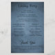 Create a custom program for your wedding. This half sheet program features an illustration of elegant sparkling string lights set against a denim blue to navy blue coloured background. It's ready to be customized with all your wedding details in elegant black lettering.