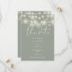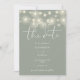 This elegant sage green save-the-date invitation, featuring pretty string lights, can be personalized with your information in chic typography with your wedding website QR code and details on the reverse. Designed by Thisisnotme©