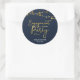 This elegant round sticker features strings of lights and the word "Engagement Party" in faux gold against a dark blue background. It's great for an engagement celebration. Check out matching invitations and items here https://www.zazzle.com/collections/strings_of_lights_faux_gold_celebration_collection-119311942951401241?rf=238364477188679314