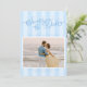 Announce your wedding date with our modern but elegant wedding Save The Date card in an oh-so-pretty shade of pastel blue. This design features preppy stripes in alternating shades of powder blue on the front and back, which lend an elegant, chic touch, while still being fresh and trendy. The design features "Save the Date" written in a classy calligraphy script with a nostalgic, vintage feel and a touch of whimsy. You are sure to wow your loved ones with this unique save the date card!