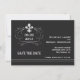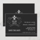 Annoncez vos plans de mariage à vos amis et famille avec ces cartes Élégant Style Rétro Fleur de Lis Save the Date. La carte présente un design élégant de symbole Fleur de Lis avec de la place pour ajouter votre date de mariage. La carte indique "save the date" dans une impression blanche de style rétro. Personnalisez avec vos noms et date de mariage. Montré ici sur un fond noir charbon.
