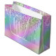 Ce joli design de sac présente une fausse holographie goutte à goutte parties scintillant texture métallique et élégante police calligraphie.