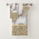 Elegant Stylish Gold Glitter Shiny White Marble Bath Towel Set