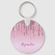 This pretty key chain design features faux pink rose gold dripping glitter metallic texture and elegant calligraphy font.