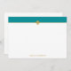 This elegant and stylish personalized note cards features teal and white colours with gold divider.