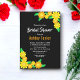 This elegant sunflower bridal shower invitation is perfect for a modern floral bridal shower. The simple design features bloom yellow and orange sunflowers with elegant white typography on a bold black background.