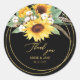 Elegant Sunflower Feather Wedding Black Classic Round Sticker