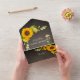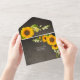 Elegant sunflower florals on rustic a chalkboard background. Modern simple all in one invitation.