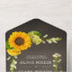 Elegant Sunflower On Rustic Chalkboard Wedding All In One Invitation