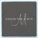 Elegant Surname Monogram | Black, Grey & White Stone Coaster