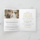 Elegant folded 50th wedding anniversary dinner invitation in white with golden fonts and an oval photo of the happy couple on the cover as well as a photo inside the folded wedding anniversary invitation. Add the invitation wording along with a text on their relationship or how they met. Perhaps include a wedding photo to give the guest a glimpse of how they looked 50 years ago. Folded 50th wedding anniversary invitation with golden fonts against a white background personalized with two photos and a text about their relationship. Fifty Years in a swirly golden script. Add a photo of the happy couple celebrating their 50th wedding anniversary. All gold details are a golden beige colour only and not gold foil.