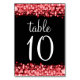 Elegant wedding "Table Number" design with Party Sparkles Red and custom table number text.