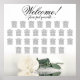 Présentez votre réception de mariage avec élégance avec ce magnifique tableau de 29 sièges de table orné d'un design classique avec un seul rose à long tige en ivoire, blanc ou crème couché sur son côté, reflétant magnifiquement dans l'eau. L'élégante lettre de script accueille les invités avec le message "Bienvenue! S'il vous plaît trouver votre table" et a de l'espace pour 290 noms ou invités avec dix sièges par table, accompagné du nom du couple et la date du mariage en bas. Ce tableau exhale le raffinement, le style et l'élégance romantique, ce qui en fait un merveilleux moyen d'ajouter une touche de glamour à votre journée spéciale tout en aidant vos invités à trouver leur siège avec facilité.