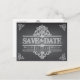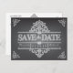 Des tourbillons complexes, des rouleaux et du texte, dessinés avec un effet craie, et placés sur un arrière - plan de tableau noir, le tout se combine pour faire une belle et élégante carte postale Save the Date mariage.