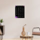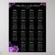Elégant tableau de sièges mariage noir et violet pour 15 tables.