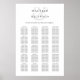 Élégante affiche en mariage noir et blanc présentant un design simple et minimal avec une grande esperluette derrière les noms de la mariée et du marié dans une police serif traditionnelle. Vous pouvez modifier les polices / couleurs dans l'outil d'édition de conception. Le modèle peut être mis à jour par table ou par ordre alphabétique. Un choix classique qui conviendra parfaitement à un mariage formel.